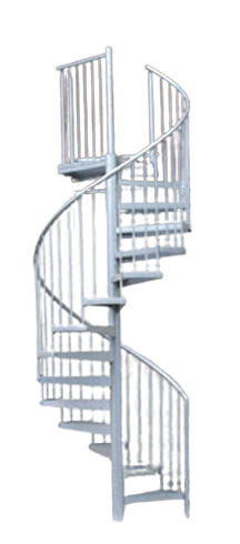 Stavebnice venkovního točitého kovového schodiště včetně zábradlí.